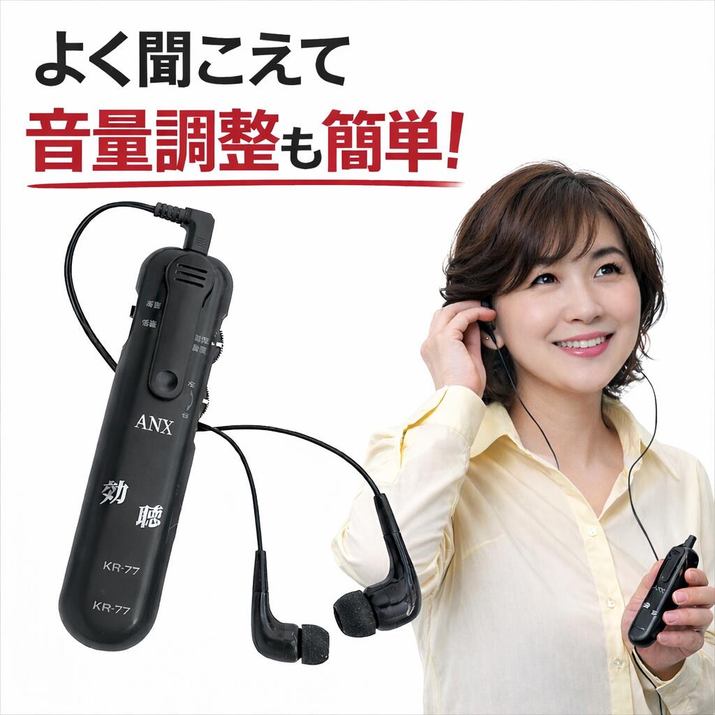 集音器 小型 高感度集音器 効聴 KR-77 (幅2.8×奥行1.6×高さ11.5cm) アネックス | 集音器 イヤホン 電池式 両耳タイプ 聴力 高齢者 耳 イヤホン 介護用品 コンパクト お年寄り 老人 シニア 在宅介護 病院 老人ホーム デイサービス 日本製 国産