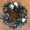 綿の実と木の実の針葉樹の大きなリース ◆ プリザーブドフラワー クリスマスリース 冬 インテリア クリスマスツリー 大きい