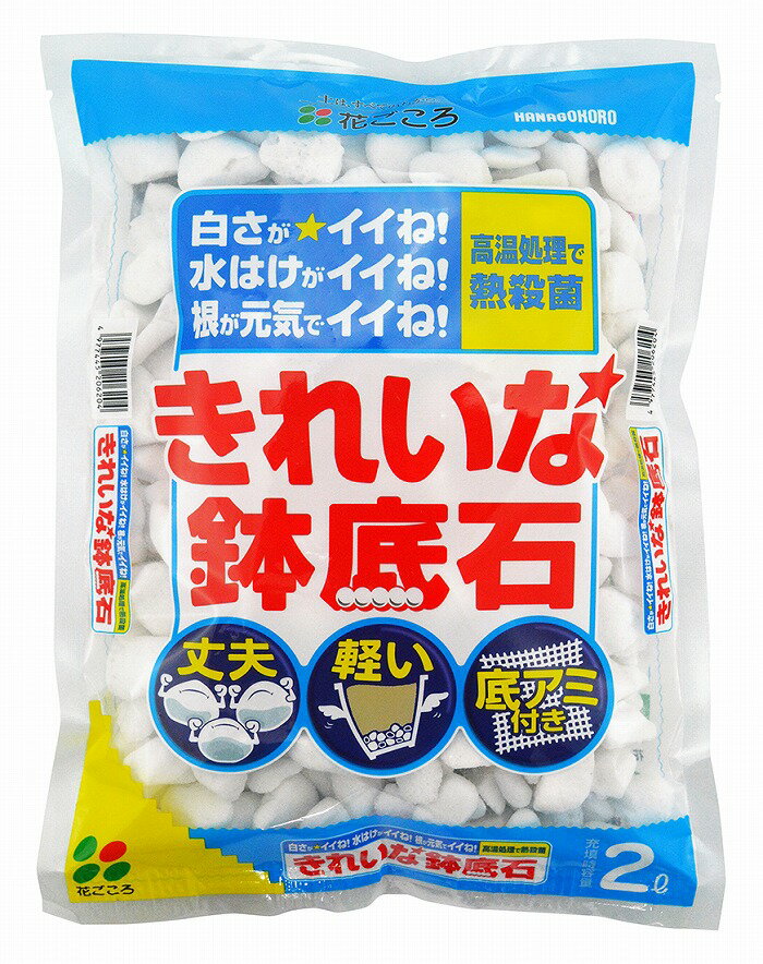 花ごころ きれいな鉢底石 2リットル■ホワイトストーンが通気性・排水性を高めます■純白で軽量な軽石です。鉢物を軽く仕上げます■くり返し使っても崩れにくい 主原料:人口軽石サイズ:2L(20620)鉢の中の通気性を良くして、根に酸素を供給します。排水性を良くし、土の詰まりによる根腐れを防止します。植付けや植え替えの時に鉢底に敷いて使用してください。水で洗えば繰り返し使用できます。使用の際の目安は、650プランターで鉢底石3L、6〜9号鉢で鉢底石0.5Lです。 適応植物:観葉植物、鉢花草花全般。鉢底石 代用 ネット ダイソー 読み方。 花ごころ きれいな鉢底石 ■ホワイトストーンが通気性・排水性を高めます ■純白で軽量な軽石です。鉢物を軽く仕上げます ■くり返し使っても崩れにくい 主原料:人口軽石 サイズ:2L(20620) 鉢の中の通気性を良くして、根に酸素を供給します。排水性を良くし、土の詰まりによる根腐れを防止します。植付けや植え替えの時に鉢底に敷いて使用してください。水で洗えば繰り返し使用できます。使用の際の目安は、650プランターで鉢底石3L、6〜9号鉢で鉢底石0.5Lです。 適応植物:観葉植物、鉢花草花全般。鉢底石 代用 ネット ダイソー 読み方。