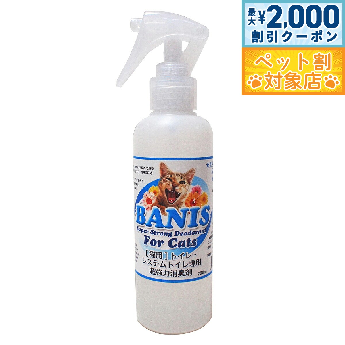 【最大2000円OFFクーポン!&店内ポイント最大62倍!スーパーSALE!】バニス BANIS for cats 猫尿専用消臭剤 200ml 猫 スプレー トイレ 消臭 除菌 国産 無添加 無香料 ノズル付き