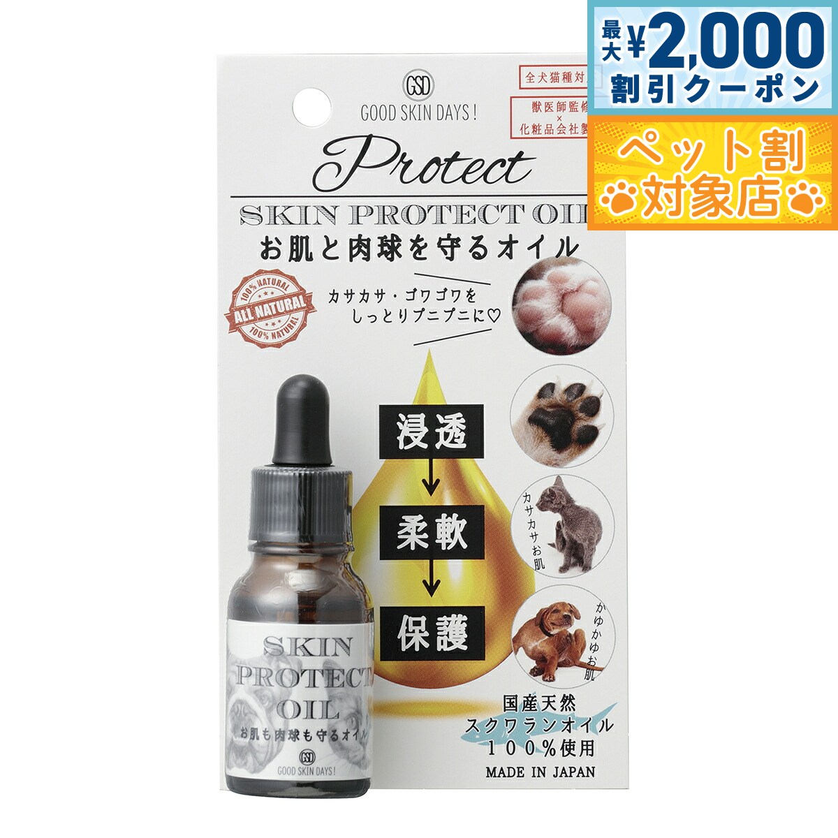 【最大2000円OFFクーポン!&店内ポイント最大62倍!スーパーSALE!】O R P グッドスキンデイズ! GOOD SKINDAYS スキンプロテクトオイル 8ml 犬 猫 スキンケア 肉球 保湿 国産 無添加 スクワランオイル