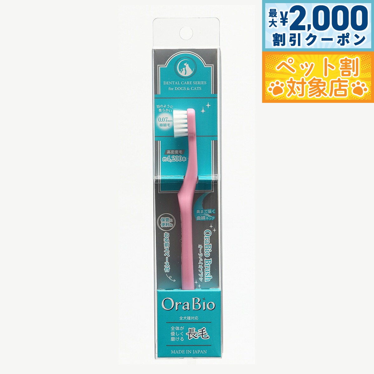【最大2000円OFFクーポン!&店内ポイント最大62倍!スーパーSALE!】OraBio オーラバイオブラシ 長毛 ピンク 犬 歯ブラシ デンタルケア 歯磨き はみがき ハミガキ 無添加 国産 歯石 歯垢 歯周対策 全犬種