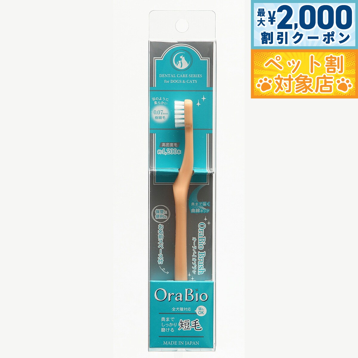 【最大2000円OFFクーポン!&店内ポイント最大62倍!スーパーSALE!】OraBio オーラバイオブラシ 短毛 オレンジ 犬 猫 歯ブラシ デンタルケア 歯磨き はみがき ハミガキ 無添加 国産 歯石 歯垢 歯周対策 全犬種