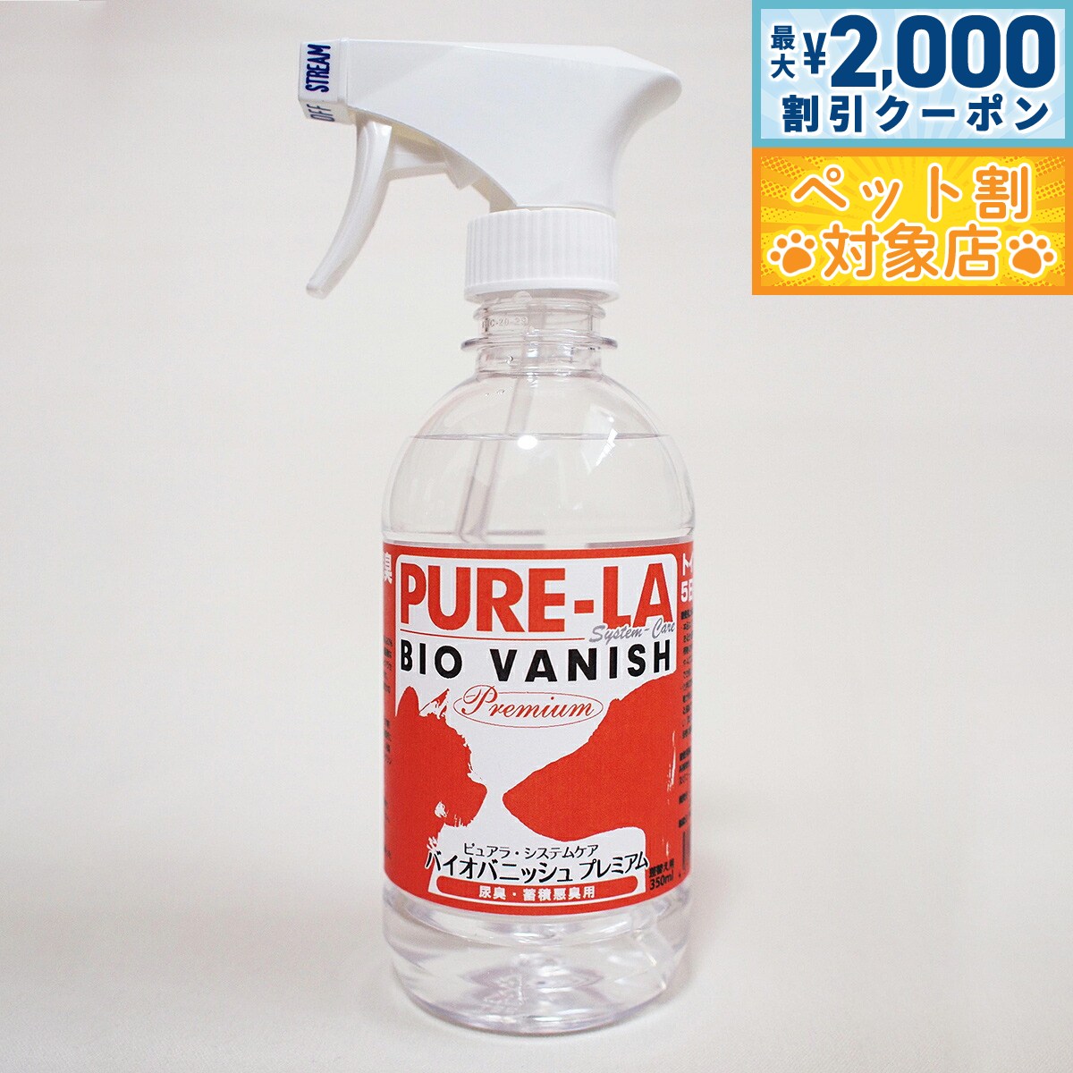 【最大2000円OFFクーポン!&店内ポイント最大62倍!スーパーSALE!】ピュアラシステムケア PURE-LA バイオバニッシュ プレミアム 本体 350ml 犬 スプレー トイレ 消臭 除菌 国産 無添加 無香料 ノズル付き
