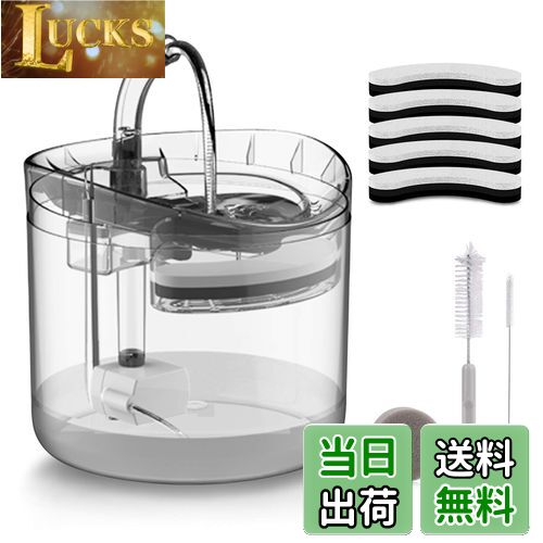商品情報商品の説明主な仕様 ○超静音&省エネ:この猫水飲み器は超静音と振動低減設計の最新世代水中ポンプを採用することにより、作動音がとても静かで、水の音ほぼなしで、夜のおやすみの邪魔になりません。猫給水器は省エネ技術が使用されており、「1.5KW/一ヶ月」という低消費を実現、電気代月42円。また、耐久性についてこのペット自動給水器は総数10,000時間以上働けます、2年以上の適切な使用で作動することができます。br○浄水機能&循環式: 三重濾過活性炭フィルターは水道水を常に軟水化し、マグネシウム、カルシウム、塩素、匂い、雑菌を取り除き、皮毛、食べ残し、ほこりを分離しながら循環しています。水を常に新鮮な状態に保つ水質浄化仕組みがあります。ペット水飲み器としてだけでなく、水槽にもとして、貯水池で金魚を飼うこともでます。活性炭に微細粉があるので、フィルターを取り外して、流水でよく洗って、再度セットしてください。br○1.8L大容量&全透明: ペット自動給水器は猫、中小型犬、鳥などだけではなくさまざまなペットにも対応できます。頻繁に水を補給する必要はなく、保管した水は1ヶ月間使用できますので、長時間外出しても心配する必要もありません。透明なデザインで、タンクに残る水量と水質はいつでも確認できますので、水のタイムリー的に補充と交換することができます。自動給水器の蛇口の清掃専用ブラシも付いています。br○2つタイプの給水モード: ネコちゃん、ワンちゃんにとってお水は大切です。水を飲んでもらう為、猫ちゃん、犬ちゃんの好奇心を刺激する2つの水流に切り替えられる猫自動給水器です。自動給水機が「蛇口式」、「湧き泉式」2つタイプの水流れモードで、蛇口水が好きな子は流れ落ちるタイプが好きかもしれません、舐めて飲むのが好きな子は湧き出るタイプをお勧めします。br○仕樣 製品名:ペット用自動給水器、サイズ(cm):幅約16.5×奥行約16.5×高さ約16.5、水中ポンプのコード長さ:2m、フィルター:高ヨウ素ココナッツ殻活性炭(5個入り)セット内容:ペット自動給水器×1、交換フィルター×5、水中ポンプ×1、アダプター×1、清掃ブラシ×3。※水は2日1回の目安で交換してください。ポンプは2週間を目安に洗浄してください。フィルタは2〜4週間を目安に交換してください。