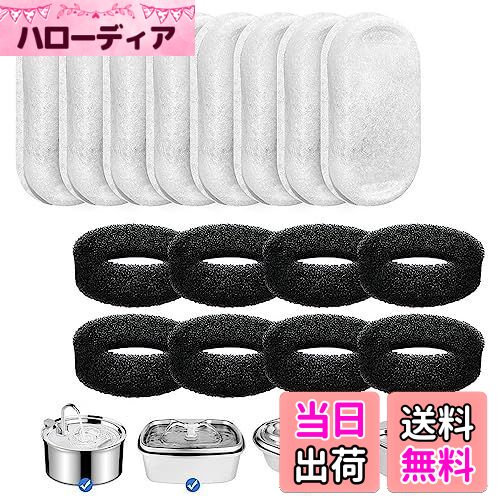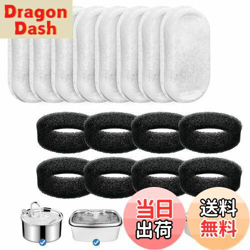商品情報商品の説明主な仕様 【セット内容】8個のフィルターと+8個のプレフィルタースポンジが含まれています。br【素材】ココナッツシェル活性炭と高密度繊維綿を使用しており、水中の毛や重金属を効果的に除去し、水の味を改善します。吸着能力が高く、長持ちします。br【特徴】プレフィルタースポンジと活性炭フィルターが組み合わさっています。これにより、より優れたろ過効果が得られ、ポンプの寿命を延ばすことができます。br【定期的な交換が必要】ペットの健康管理や尿路感染症のリスクを減らすために、定期的なフィルターの交換が必要です。通常、2〜3週間ごとの交換を推奨しています。br【ご注意】使用前にフィルターを水に2分間浸けてから、十分に流水で洗浄することをおすすめします。これにより、フィルター表面に付着した活性炭の微粒子がペットの飲水器に入るのを防ぐことができます。この微粒子はペットに害を及ぼしません。