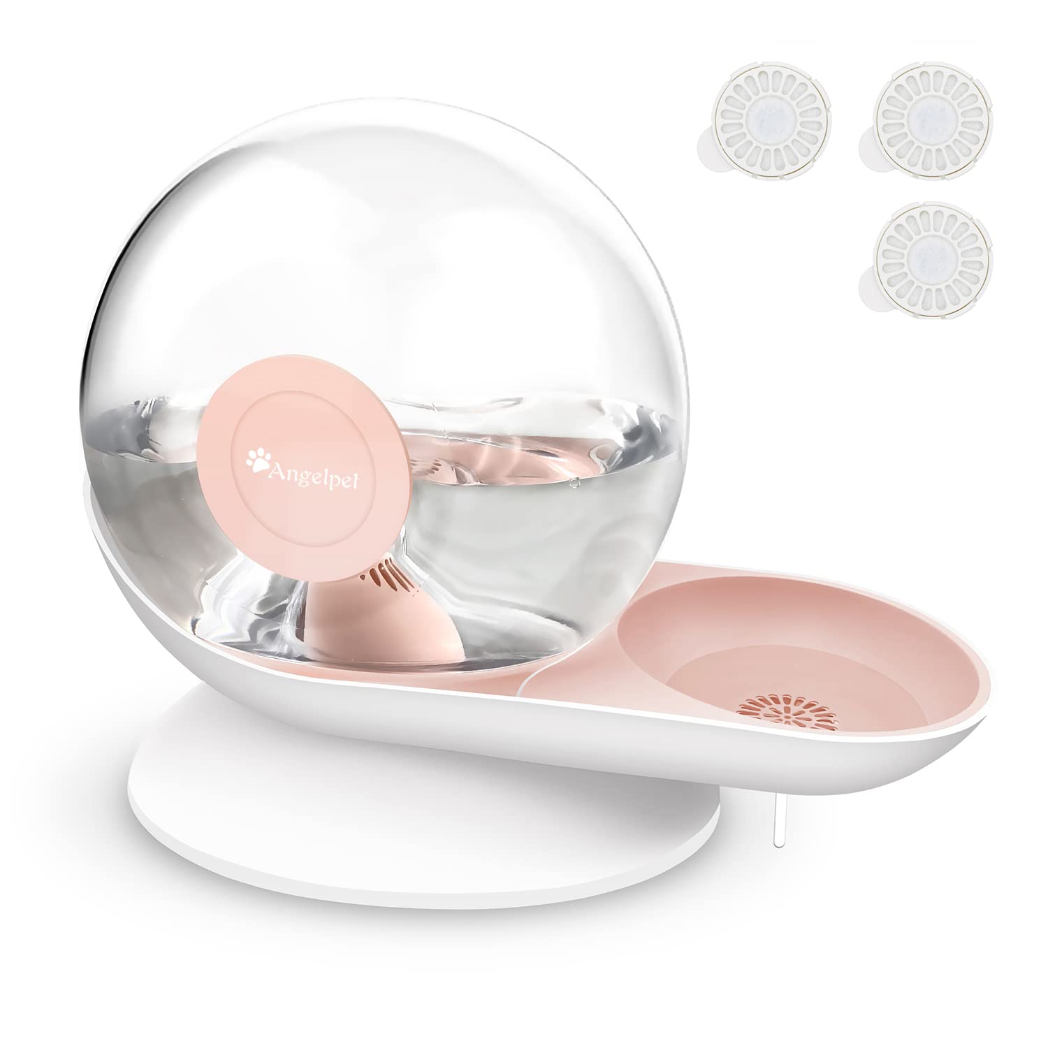 【送料無料】猫 犬 水 水飲み器 自動給水器 みずのみ 自動 2.8L大容量 猫 中小型犬 水飲み みずのみ器 フィルター付き 重力設計 自動補水 電気不要 お留守番対応 Angelpet(ピンク, フィルター3枚入り)