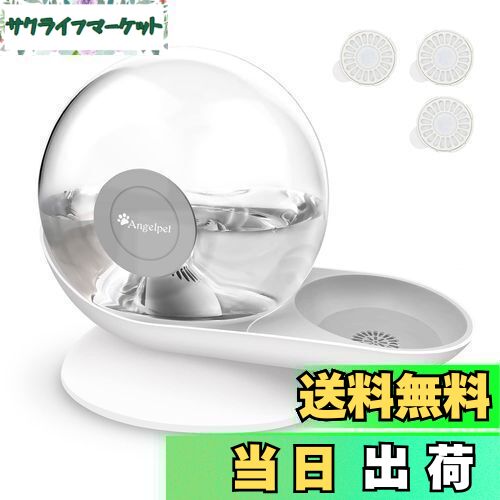 商品情報商品の説明主な仕様 【カタツムリ形の猫水飲み器&2.8L大容量】この猫水飲み器が可愛いカタツムリの形に設計され、猫ちやんや犬ちゃんに水飲みの好みを呼び起こします。 この水飲み器は2.8Lの容量で「サイズ:30*20*15センチ」、貯水量が十分なので、頻繁に水を補給する必要はありません。 猫、犬などペットの水飲みに対応でき、長時間外出してもお水が切れる心配する必要もありません。 安定とした楕円形の台座で、猫や犬に転倒する恐れがありません。br【重力自動給水の犬みずのみ器】水位差による水圧が形成される原理を利用し、水を自動的に補充します。電源も不要なので安心して利用いただけ、省エネにも達します。br【水質浄化機能を備える水飲み器】カタツムリ殻の貯水筒が密閉設計で、外部からホコリ等の汚れを防ぎます。貯水筒から水を自動的に補給する時、フィルター付きの犬用みずのみ器は、水道水を軟水化し、皮毛、ほこり等汚れを濾過して、水を新鮮な状態に保つことができます。愛犬、愛猫に最も美味しい水を提供します。※この給水器はフィルター3枚付きです。ご注意:付属フィルターの内1枚は、事前に水飲みトレイの下にセッティングされております。br【食品グレード素材&使用簡単】食品グレードの高品質なPETとABS樹脂で作られる自動給水器は安全無毒でペットが舐めても心配要りません。使用後の洗浄は水の流れで濯ぐまたはきれいな雑巾で拭き取るだけで簡単に完成します。インストールも簡単にできます。水量が確認できる透明な貯水ボルトから残る水量が見えますので、タイムリー的に水を補充することができます。br【オススメ】猫水飲み器専用のフィルターエレメントの交換頻度は1ヶ月くらいになります。6個セットのフイルターも販売しており、一緒にご購入の場合、フイルターが10%OFFになります。【アフターサービス&ご注意】弊社では、全ての商品に対して発送前に厳格な品質検査を行っております。Angelpetのブランドは商標登録番号は6290864になり、万が一、何か不備がございましたら、いつでもお気軽にお知らせいただければ、お客様に高品質で高水準なアフターサービスを提供いたします。br【使用方法】 Step1 給水タンクの底部の両側で手を置き、回せずに給水タンクを直接に上に引き抜けます。或いは、水飲みトレイを片手で押しながら、給水タンクを片手で片側を浮かして引いて外します。(給水タンクを回転しないでください) Step2 給水タンクの蓋を開けて水を入れた後、蓋を締めます。 Step3 給水タンクを台座へ押して「カチャ」と音が聞こえれば組立完了です。br【パッケージについて】商品は日本へ到着した際に弊店が再度検品し開封させていただき、透明テープで二回目シールされることになります。すべての商品が新品ですのでご安心ください。
