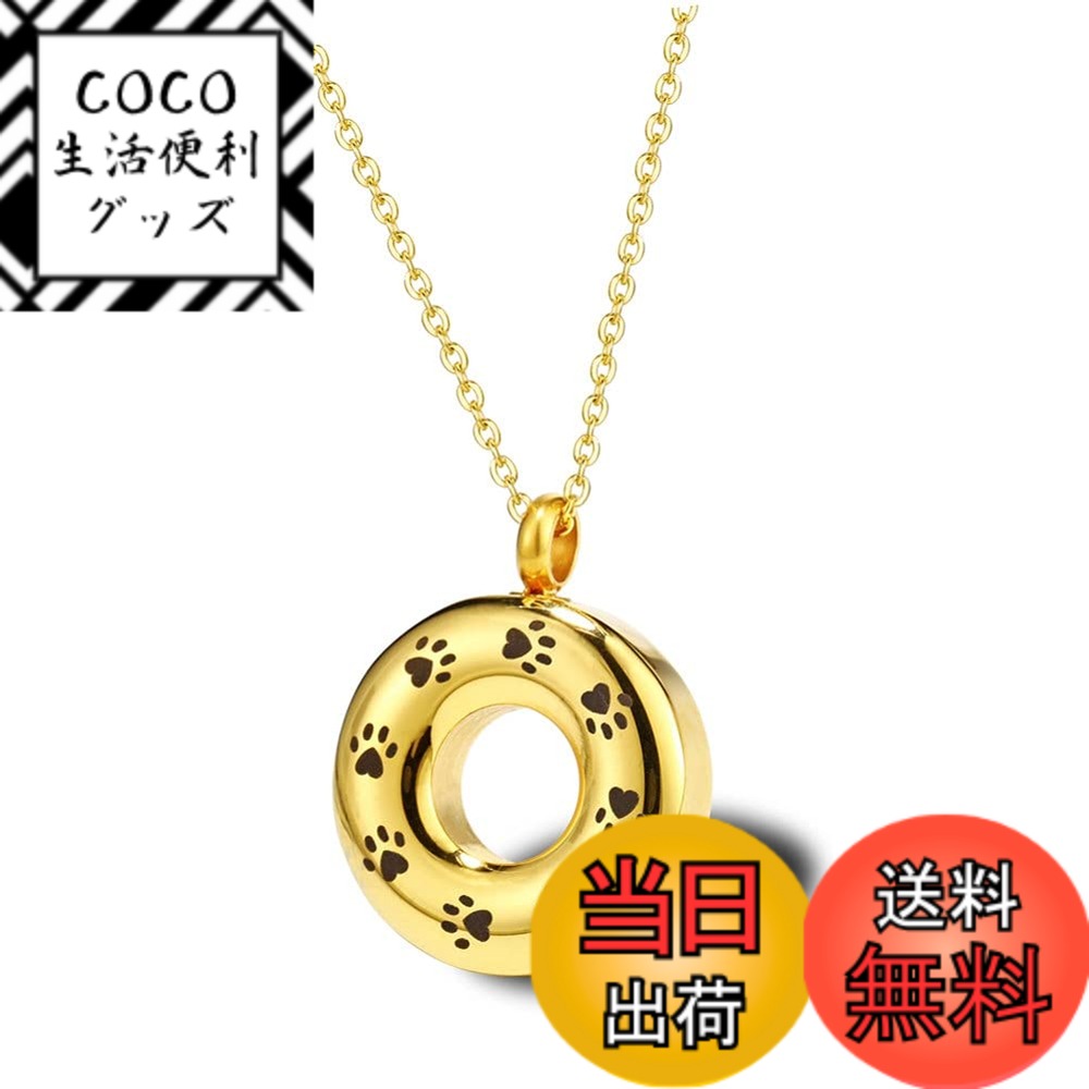 【送料無料】[Rockyu] メモリアルネックレス 遺骨 ゴールド シルバー あずきチェーン 細目 犬の足跡 手元供養ペンダント リング 浮き輪ペンダント チタン 金属アレルギー対応 アクセサリー 色:ゴールド