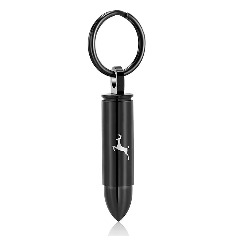 【送料無料】[Rockyu] ペット 遺骨ペンダント メンズ レディース ステンレス製 ブラック 小鹿 彫刻 ペット骨壷 子弾型ネックレス メモリアルジュエリー 追悼アクセサリー ペットの思い出保持 お守り チャーム ネックレス ギフト (Black) 色:ブラック