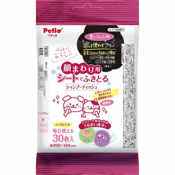 【12個セット】 ペティオ 犬猫用 顔まわり用 シートでふきとる シャンプーティッシュ 30枚 全犬種・全猫種 Petio W26881 ノンアルコール シャンプー ペット用防災 ペット用品 ペット用 フェーズフリー 防災 備蓄 長毛 ウェットティッシュ 短毛 厳選素材