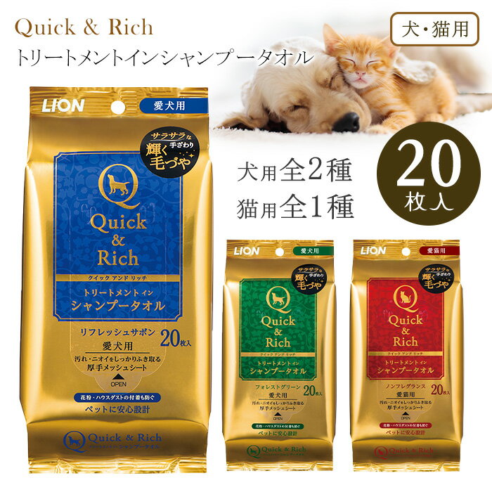 【10個セット】 ライオン クイック&リッチ トリートメントイン シャンプータオル 愛犬用 フォレストグリーン 20枚入 犬 ジェル LION ライオンペット 犬用シャンプー ライオン商事 お手入れ ボディケア ブラッシング シャンプー ペット用防災 防災グッズ 安心素材