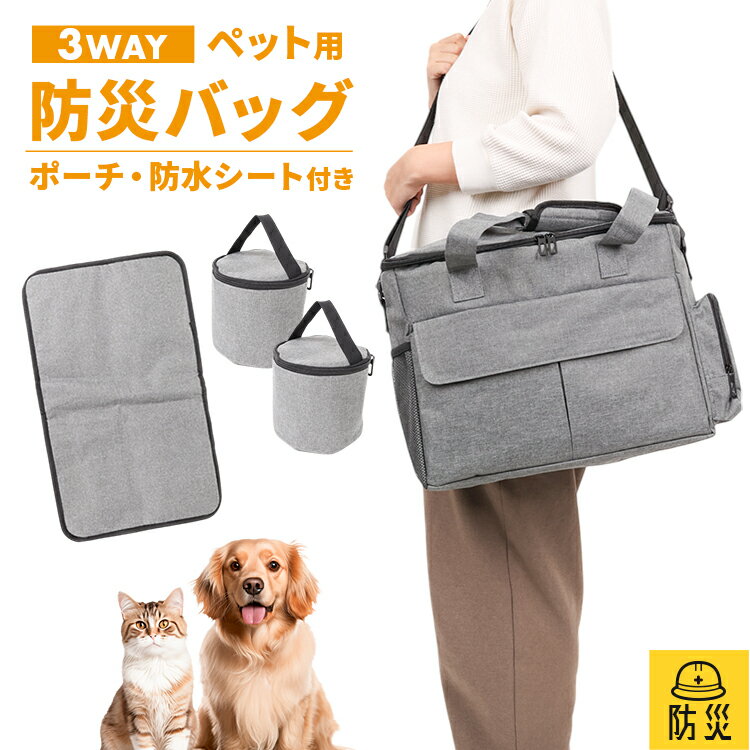 ペット用防災バック 防災バッグ 防水マット ペット用 犬 バッグ キャディーオン 手持ち ショルダー 持ち運び 大容量 ポーチ 防水シート クッションシート コンパクト ポーチ2個付き