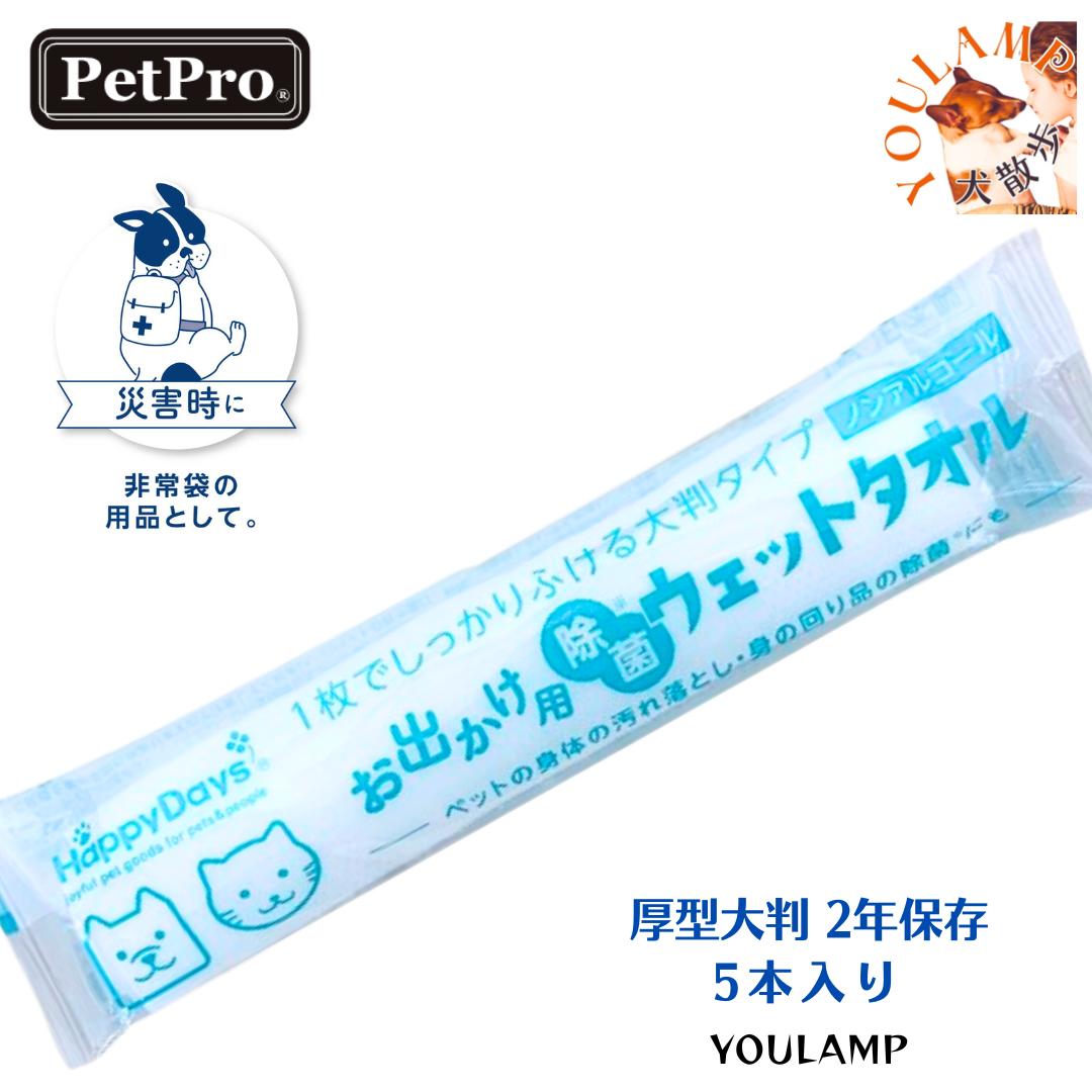 犬 ウエットタオル お出かけ用 除菌 ウェットタオル 5本入り 厚型大判 使い捨てタオル 長期保存 2年間 防災 グッズ プレゼント グッズ ユウランプ