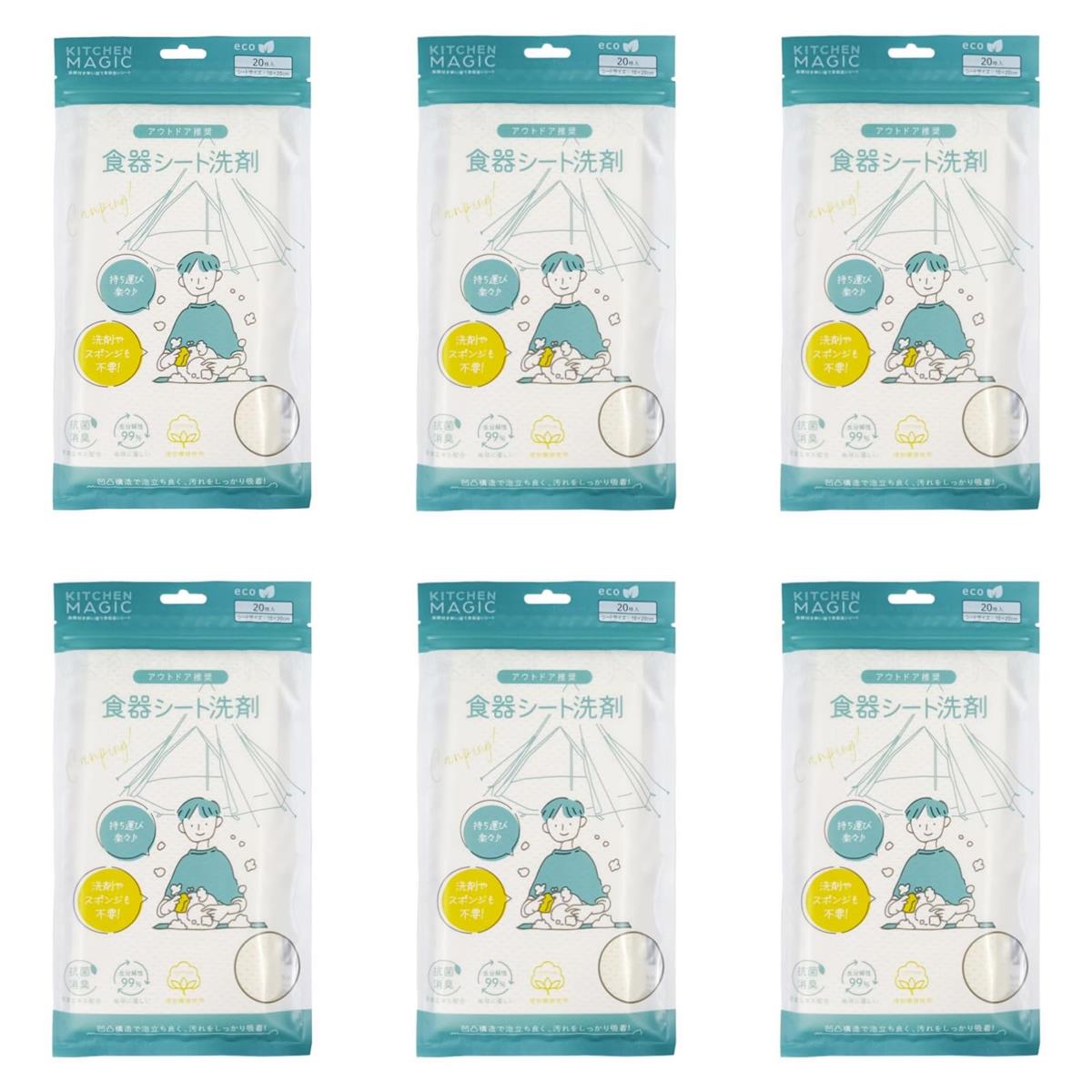 キューフラ(Q-FLA) キッチンマジックミニ 6個 20枚入 使い捨て食器洗い洗剤 シート 食器洗いせっけん 食器洗いスポンジ 食器用スポンジ ウエス ワイプ キッチン用品 清潔 哺乳瓶洗剤 防災用品 防災対策 災害備蓄 非常時持ち出し袋 常備 緊急 携帯 水筒用 地震 対策 キャンプ