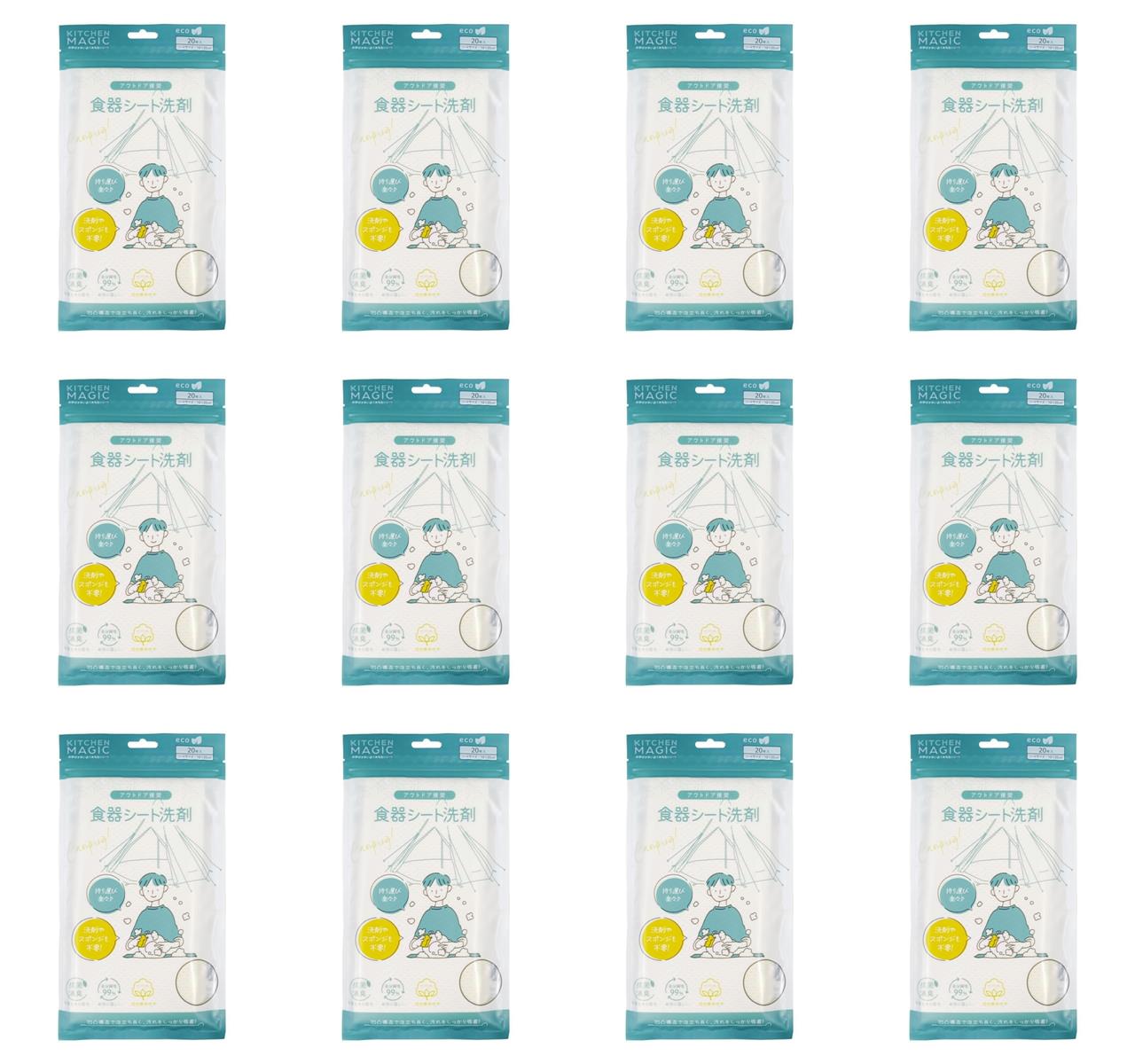 キューフラ(Q-FLA) キッチンマジックミニ 12個 20枚入 使い捨て食器洗い洗剤 シート 食器洗いせっけん 食器洗いスポンジ 食器用スポンジ ウエス ワイプ キッチン用品 清潔 哺乳瓶洗剤 防災用品 防災対策 災害備蓄 非常時持ち出し袋 常備 緊急 携帯 水筒用 地震 対策 キャンプ