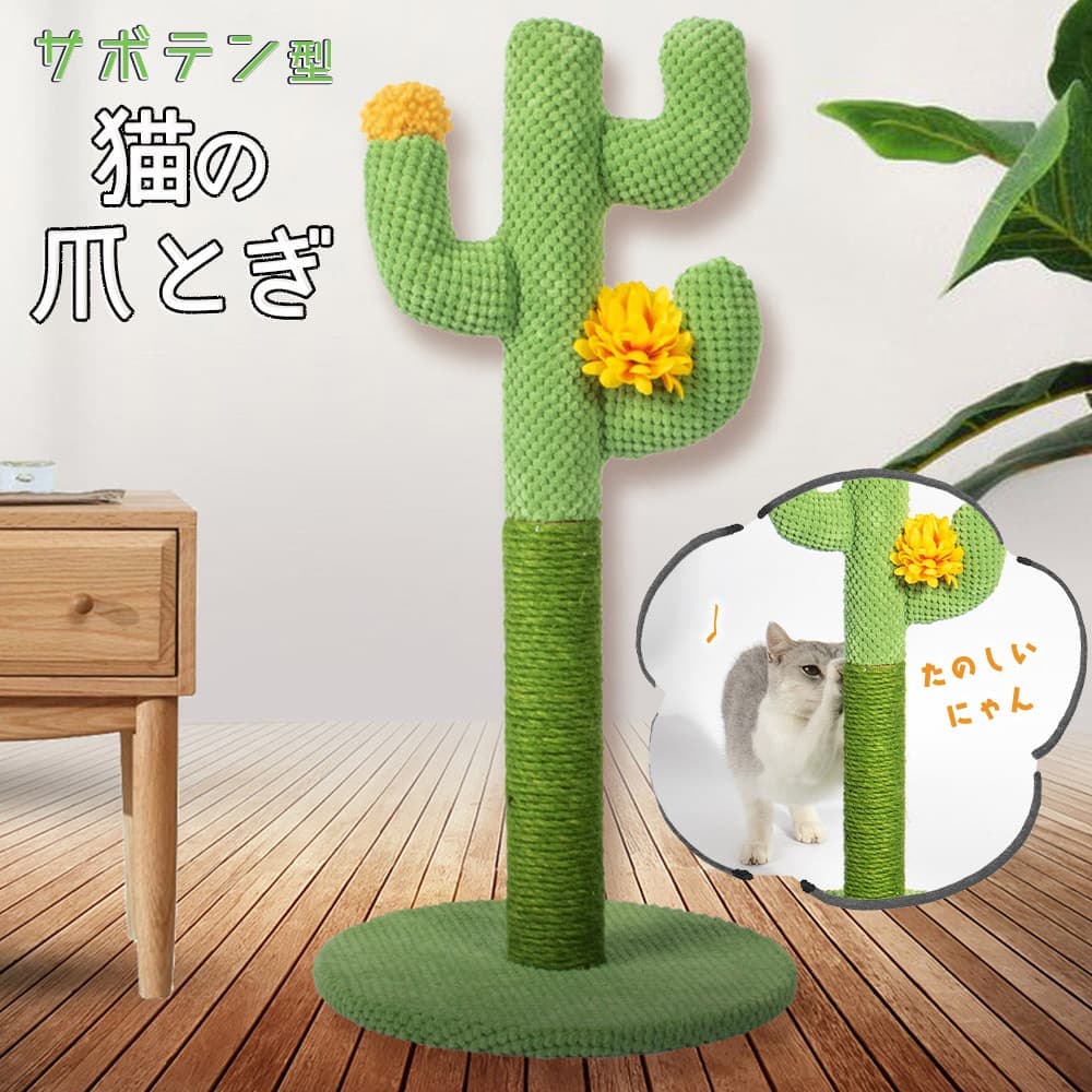 最短当日出荷◆猫 爪とぎ サボテン グリーン 高さ60×直径30cm スクラッチポール タワー 可愛い インテリア 天然 麻 自然素材 安定 頑丈 長持ち 縦型 縦置き 組み立て簡単 運動不足 ストレス解消