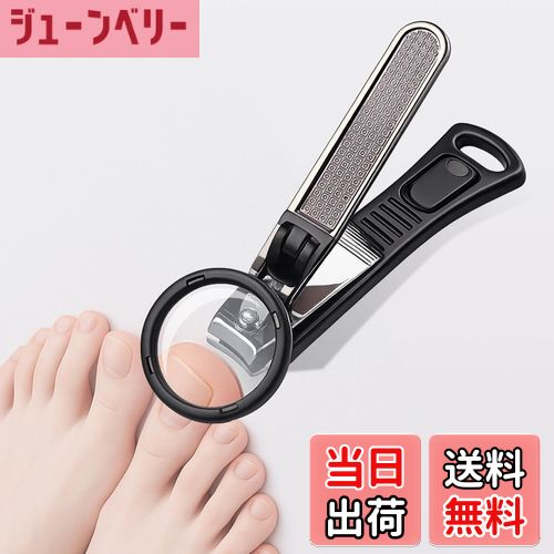 【送料無料】【シニア専用】180°調整可能拡大鏡付き爪切り|3.3cm拡大レンズ+飛散防止|硬厚爪も楽々カット!安全ギフト 色:黒色、サイズ:特大