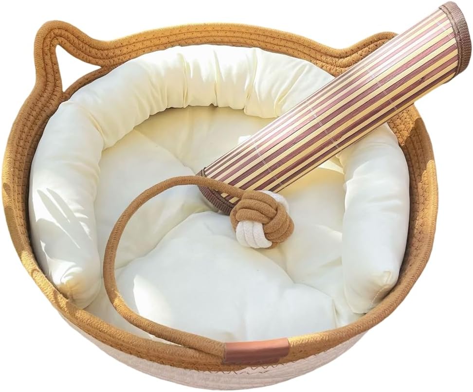 (ムアドレス) 猫ベッド ペットベッド 夏ござ クッション ソフトマット 抱き枕 4点 セット 綿 ちぐら型ペットベッド ちぐら型猫ベッド 爪とぎ ペットハウス 大きいサイズ 犬猫兼用 ベッド 円形