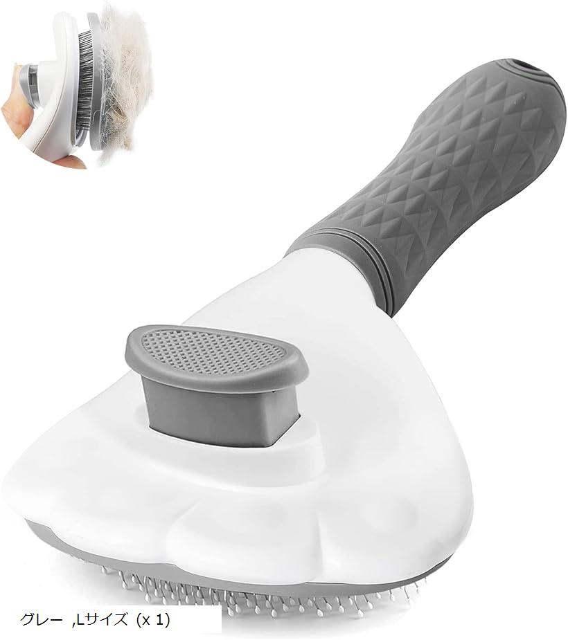 ペット用 ペットブラシ キャットブラシ 犬 猫 ブラッシング グルーミングブラシ 抜け毛 毛玉取り ムダ毛(Gray, L)
