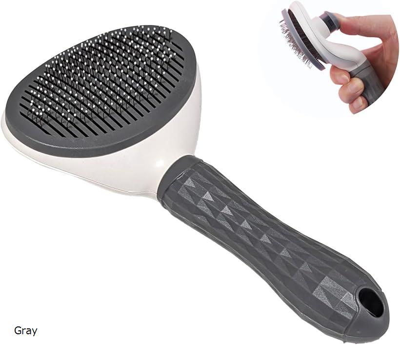 ペット用ブラシ 抜け毛取り マッサージ ソフトピン 猫 犬 長毛短毛対応 ブラッシング 毛玉予防 肌にやさしい お手入れ簡単 (Gray)