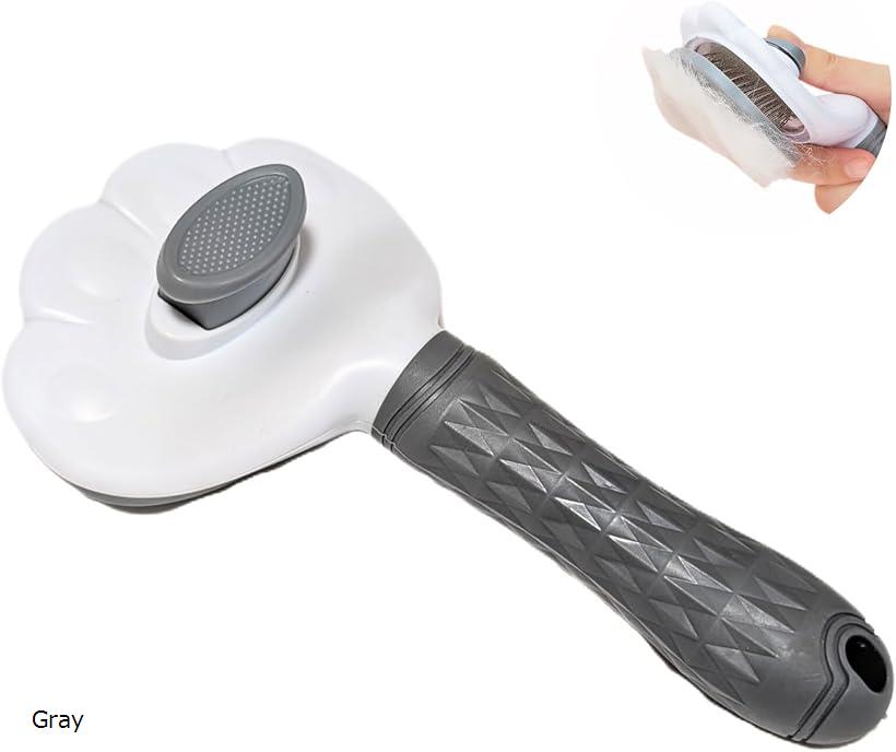 ペット用ブラシ 抜け毛取り マッサージ ソフトピン 猫 犬 長毛短毛対応 ブラッシング 毛玉予防 肌にやさしい お手入れ簡単 肉球 (Gray)