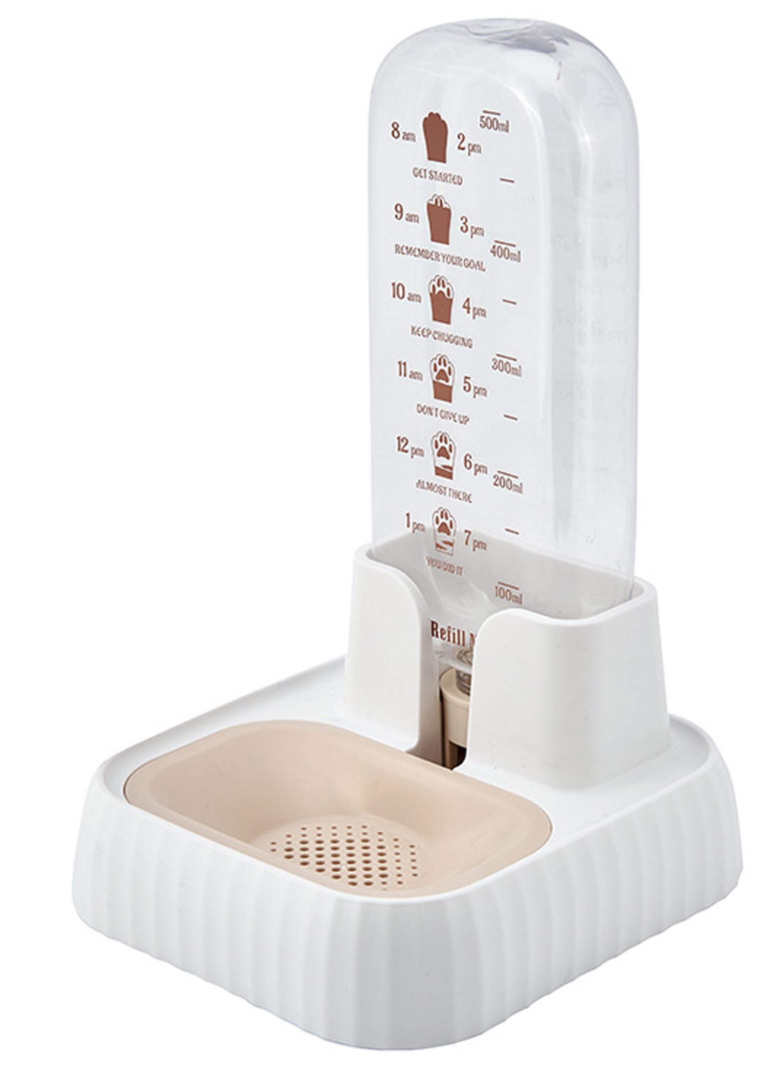 Hakona 猫 水飲み器犬 水飲み器 ペットボトル自動給水器 猫 水飲み皿みずのみ器 犬給水器スタンド固定浄水器 ねこペット 水飲み器ウサギ 水飲み器自動水やり器 猫給水機大容量 電源不要 プラスチックペット用品 500ML短期出張 熱中症を防ぐ (白色)