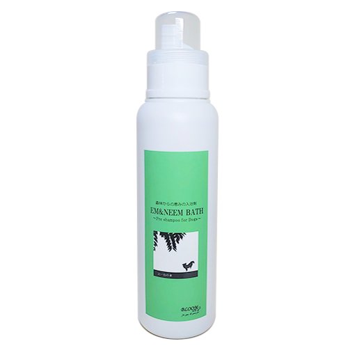【商品スペック】 ■成分 水、ヤシ油脂肪酸PEG-7グリセリル、EM発酵液、PEG-60水添ヒマシ油、ニームリーフエキス、ゲンチアナ根エキス、クマザサ葉エキス、硫黄、カキタンニン、セラミドEOP、セラミドNP、セラミドAP、コレステロール、クエン酸、クロロフィリン、ヒノキ香料 ■内容量:200ml ■原産国:日本【BLOOM】ブルーム EM&NEEM BATH 〜Pre Shampoo〜(入浴剤) ▼200ml ▼500ml ▼3L(業務用) やさしいヒノキの香りでリラックス♪ 森林からの恵みの入浴剤『EM&ニームバス(プレシャンプー)』 「安心できる成分の入浴剤があったら…」そんな、トリマーさんの声から生まれた 入浴剤です。 『EM&ニームバス』には、EMエキスと食品を発酵させて作った「EM発酵エキス」を 配合しています。 「EM発酵エキス」には、乳酸菌・光合成細菌・酵母菌といった善玉菌が凝縮し、皮膚 被毛の健康維持に役立ちます。 また、「EM発酵エキス」の他にも皮膚被毛の健康維持に役立つ成分をたっぷりと配合。 そのため、『EM&ニームバス』を溶かしたお湯にはぬめり感がありますが、入浴後は 指通りの良いさらさらな被毛に仕上がります。 【 特長 】 ★おすすめポイント ●『EM&ニームバス』を入れたお湯に浸かりやさしく撫でてあげるだけで、皮膚被毛に負担を掛けることなく、からだに付いた汚れを落とします。 ●入浴は5〜7分という短い時間でOKです。 ●入浴することで汚れを落とすことができるので、入浴後のシャンプーの時短にも繋がります。 ★こんなわんちゃんにおすすめ ●シャンプーだけでは汚れが落とせない皮脂汚れやべたつきのあるわんちゃん ●シャンプーが苦手な仔犬 ●シャンプーできないわんちゃんや、シニア期のわんちゃん(様子を見ながらご使用 ください) ●体臭がきつい子 ●乾燥肌の子 【ご使用方法】 ★入浴方法 ※お湯の温度は37〜38度程度を目安に、季節によって調節してください。 ●浴槽にペットの胸の辺りまで浸かるぐらいのお湯を入れ、本品をよく振って から適量を入てください。 ●お湯をよくかき混ぜてから6〜7分、掛け湯をしながら入浴させます。 ● 汚れや臭いが気になる箇所は重点的に掛け湯を繰り返します。 ●被毛をもみ込みむようにマッサージしながら浸からせると効果的です。 ●お顔周りの汚れは、目・口・耳に入らない様に注意をしながら、お湯を軽く絞った ガーゼなどで拭き取ってください。 ●入浴後は、シャワーで軽く洗い流した後ペットをよく乾かしてあげてください。 ★シャンプーと併用する場合 ●入浴後にシャワーで軽く洗い流してからシャンプーしてください。 ● シャンプーは「アーユルニームシャンプー」のご使用をおすすめします。 ●シャンプー後はペットをよく乾かしてあげてください。 湯量 / EM&NEEM BATHの量(目安) 10L / 10cc 20L / 20cc 30L / 30cc 【商品スペック】 ■成分 水、ヤシ油脂肪酸PEG-7グリセリル、EM発酵液、PEG-60水添ヒマシ油、ニームリーフエキス、ゲンチアナ根エキス、クマザサ葉エキス、硫黄、カキタンニン、セラミドEOP、セラミドNP、セラミドAP、コレステロール、クエン酸、クロロフィリン、ヒノキ香料 ■内容量:200ml・500ml・3L(業務用) ■原産国:日本