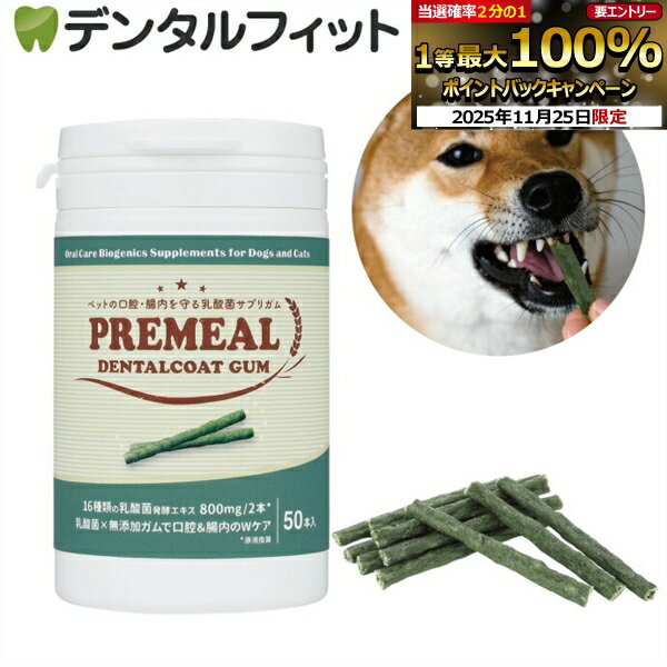 【★エントリーと店内3点購入でP10倍(11/20 20:00-11/27 1:59迄)】プレミール デンタルコート ガム PREMEAL Dental Coat Gum 50本入 ペット用 犬用 猫用 乳酸菌・ビフィズス菌配合 国産牛皮 デンタルケア 腸活 低カロリー