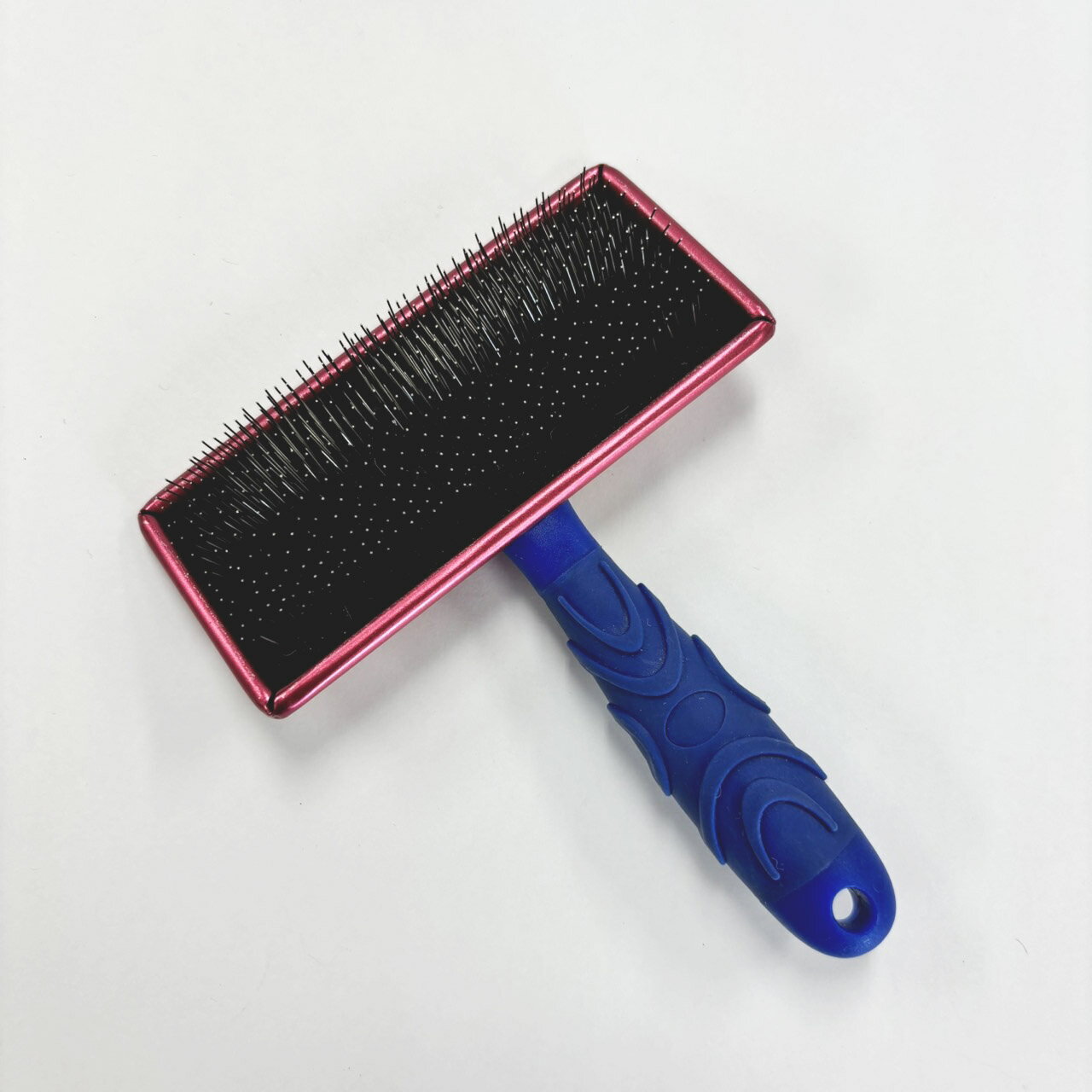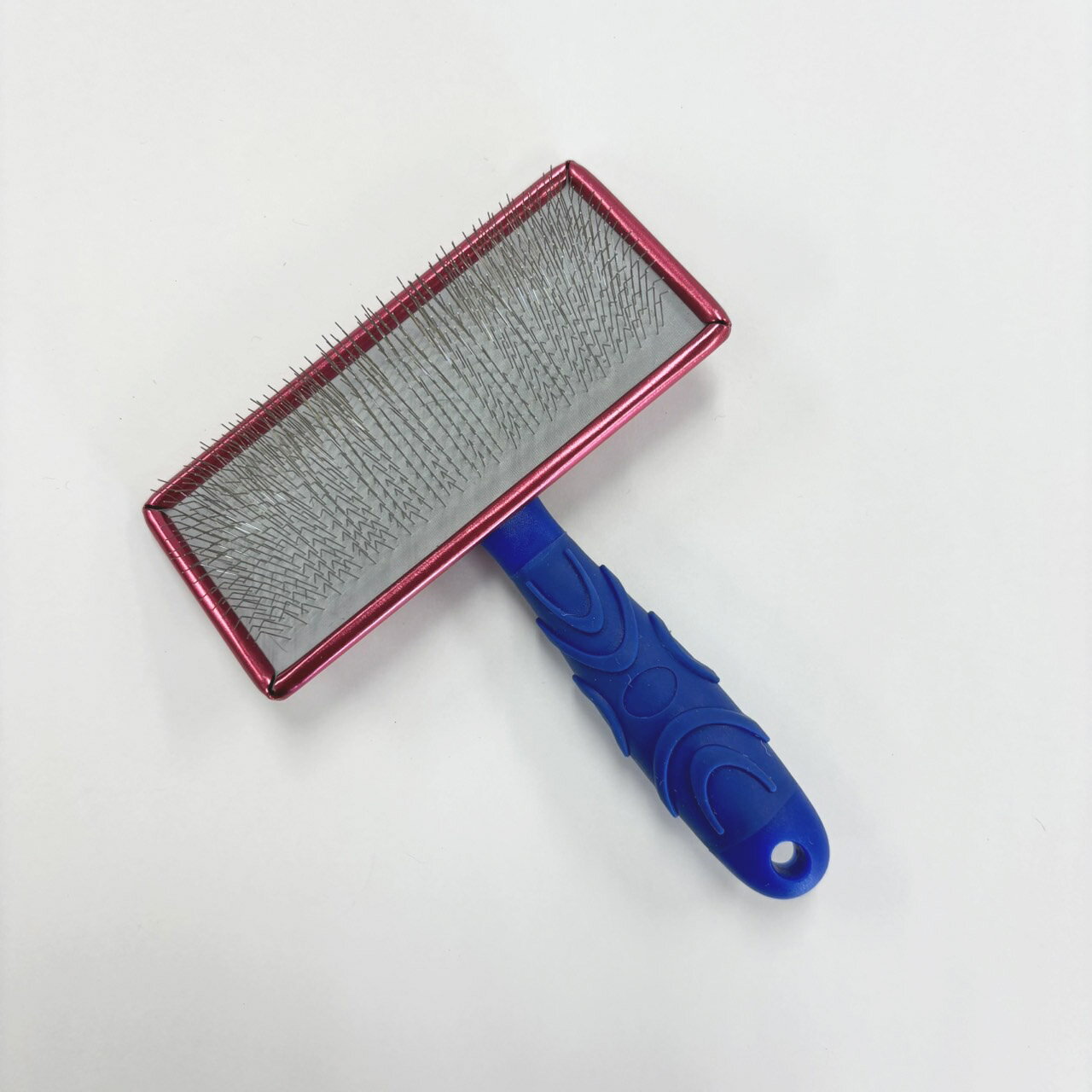 軽量なアルミフレームを採用 硬く軽量なPPにゴムのような弾性を持つTPEを組み合わせたハンドル リップルスタイルで手からすべらずホールド感アップ 一般的なハードタイプよりも柔らかめなピンを採用し負担を軽減 被毛の毛質や用途に合わせご使用ください <仕様> ・サイズ:L113 x W52mm