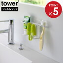 フィルムフックペット用歯磨きセットホルダー タワー 山崎実業 tower ホワイト ブラック 5308 5309 タワーシリーズ yamazaki