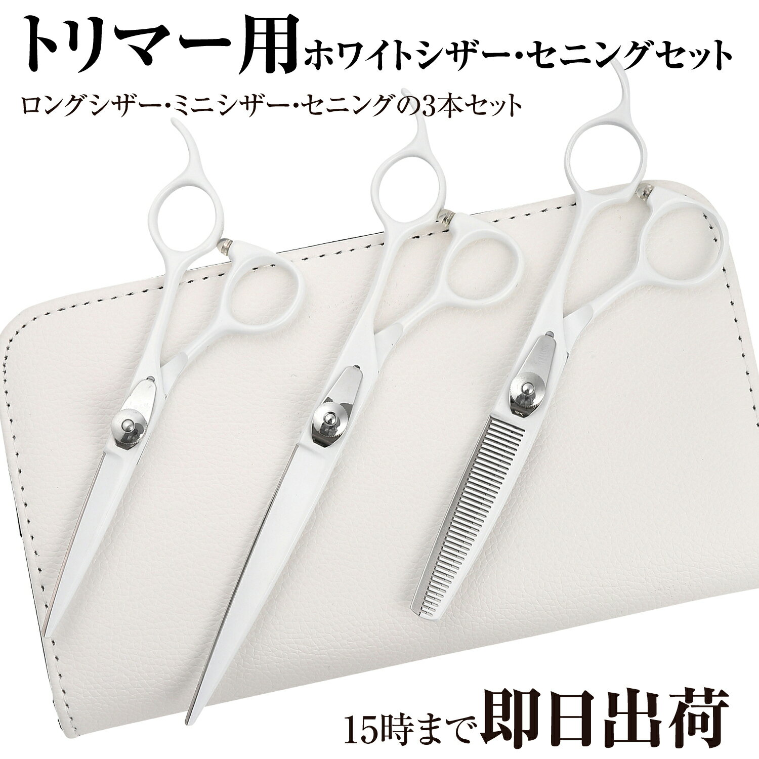 【送料無料】日本の鋏専門メーカー トリマー用/ DEEDS P1 ホワイトシザー トリマー オリジナル 3本セット / 毎日のお仕事も安心なベースカット鋏、ミニ鋏、スキ鋏の3本セット / ペット 犬 トリマー トリミング はさみ シザー すきばさみ セニング