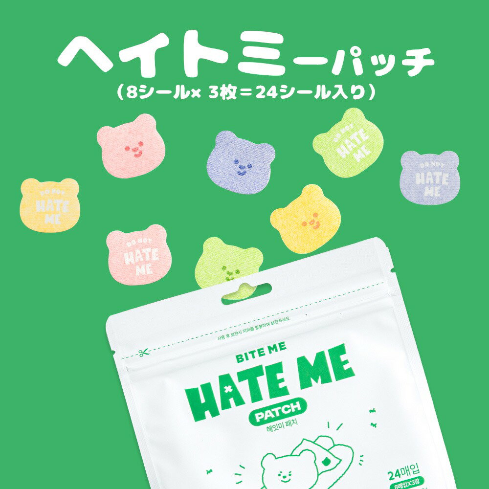 送料無料/ BITE ME バイトミー ヘイトミー パッチ 24シール入り(8シール×3枚)犬 お散歩 虫除け 蚊よけ 貼るだけ 簡単 可愛い シール シトロネラオイル コンパクト 安心 安全 1日使える くま ベア