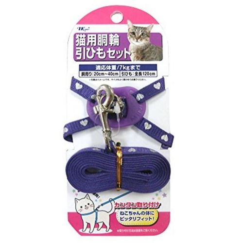 NMハート柄猫胴輪セットN 紫 ねこモテ
