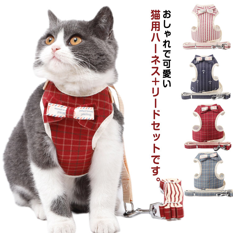 猫用 ハーネス リードセット 胸当て 胴輪 S-L 抜けない 小型犬 リボン メッシュ 通気性 お出かけ 散歩グッズ 犬用 ベスト ネコ用 ねこ用 キャット CAT 猫具 簡単装着 痛くない ペットグッズ 猫用品 可愛い 蝶ネクタイ 送料無料