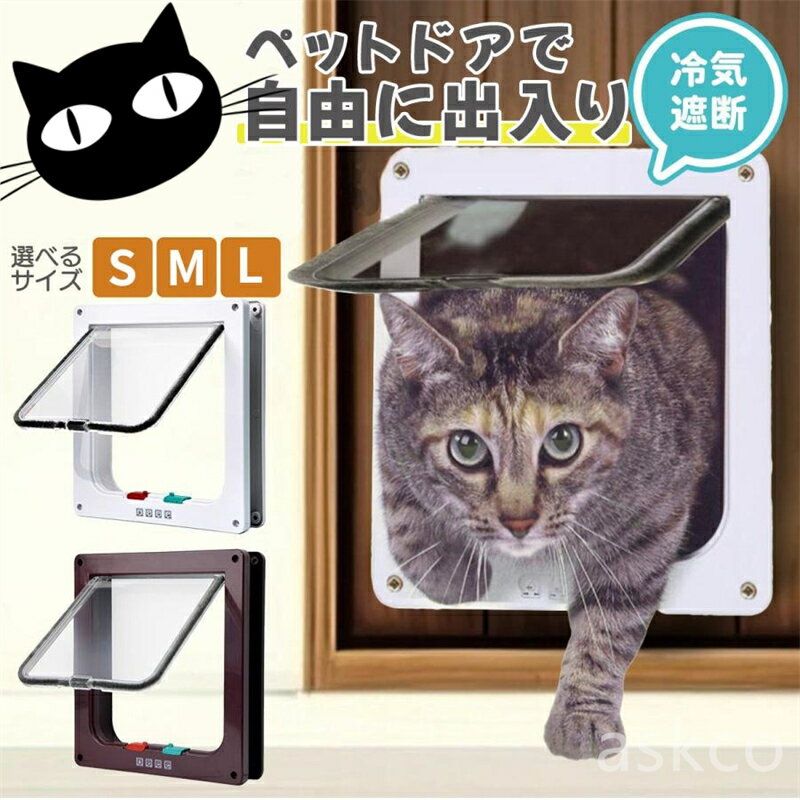 【時間限定!15%OFFクーポン】猫ドア キャットドア 猫 ドア ペットドア S M L 3サイズ展開 壁 取り付け 犬 猫 小犬 子猫 猫扉 出入り口 ドア 薄型 開閉ロック機能付き 4way切替 壁 窓 出口 入り口 猫用ドア 扉 ペット用品 小型 冷暖房対策 室内用 送料無料