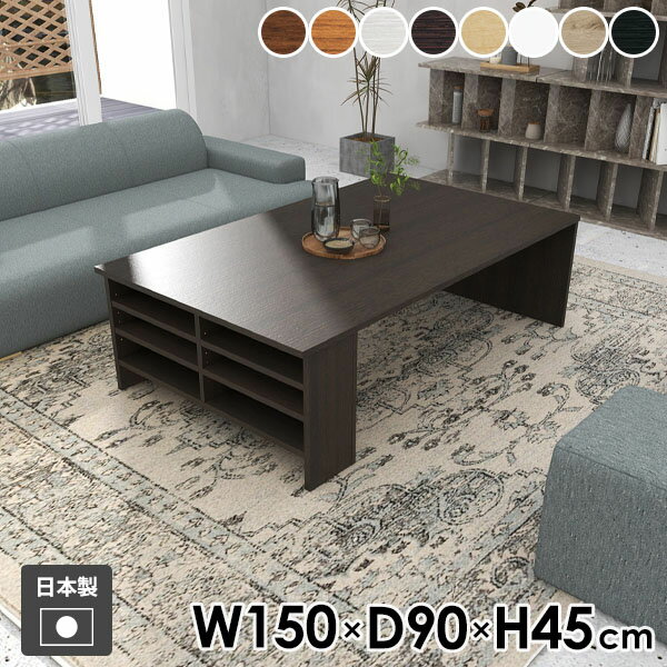 ローテーブル 座卓 リビングテーブル 棚付き シンプル 収納付き センターテーブル 本棚 おしゃれ パソコンデスク カフェテーブル ホワイト 日本製 四角 木製 ソファーに合う 北欧 モダン ソファテーブル 机 ラック 低め 【Hammer3/ラック/幅150cm奥行90cm高さ45cm/木目】 ☆