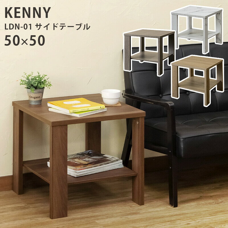 送料無料 サイドテーブル 50x50cm ナイトテーブル 木製 正方形 木目 棚付き KENNY ソファーサイドテーブル ベッドサイドテーブル キッチン リビング コンパクト 作業台 おしゃれ 寝室 モダン レトロ テレビ台 ローボード 幅50cm