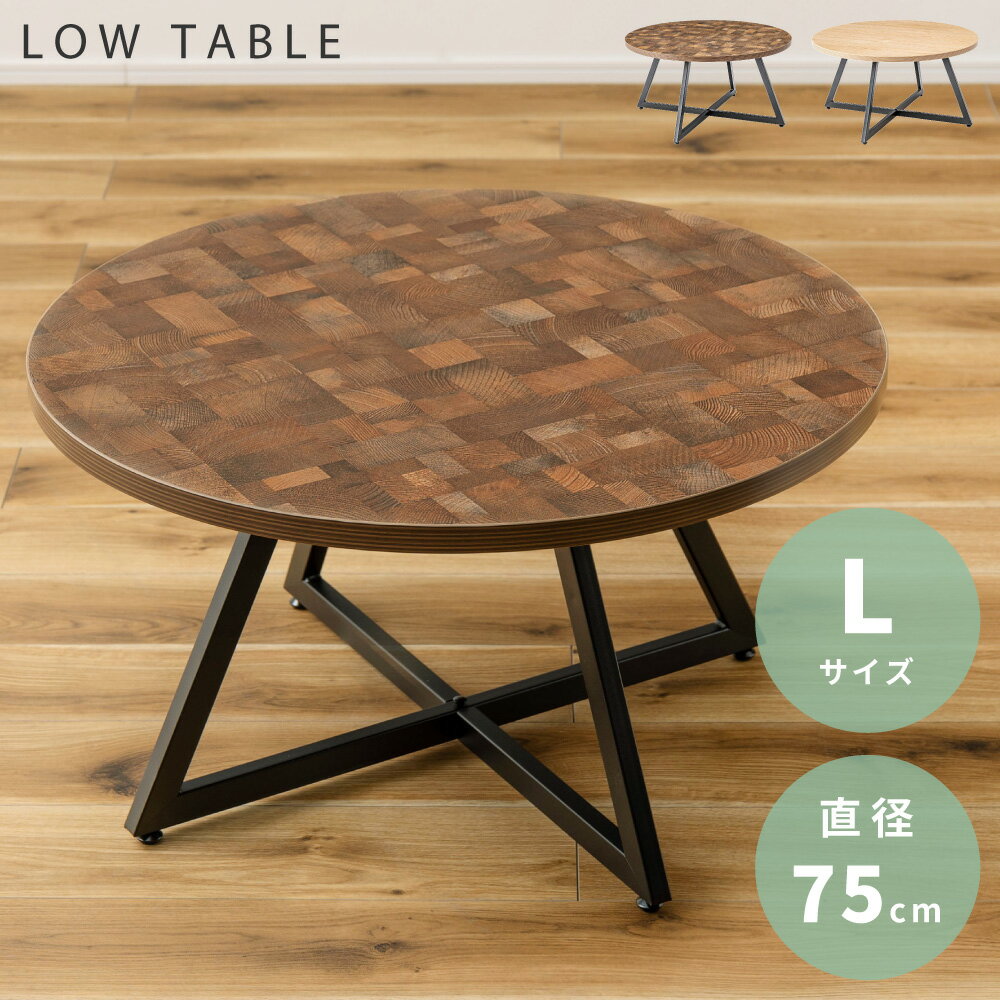ローテーブル 丸テーブル 幅75cm 机 丸型 円形 センターテーブル 木目調 スチール 黒フレーム リビング シンプル モダン インダストリアル ナチュラル ブラウン おしゃれ