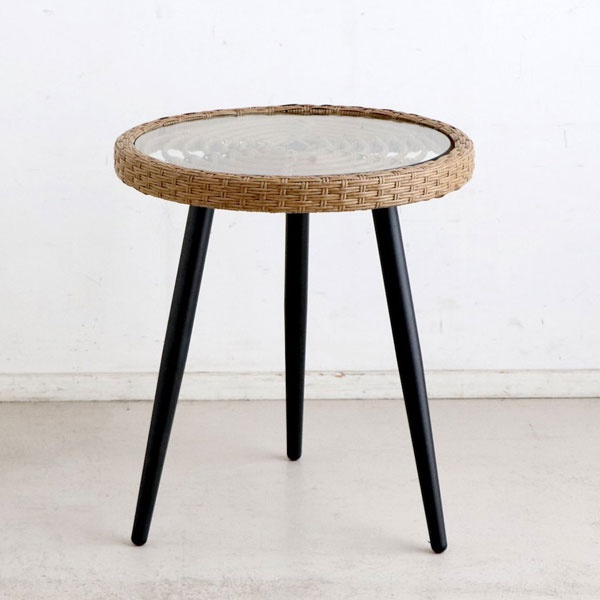 リゾネア サイドテーブル ガーデンファニチャー アウトドア 円形 ラタン調 ガラス アジアン テラス リゾート おしゃれ 東馬 resonarie