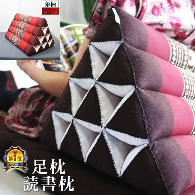 三角枕 三角クッション 4段 象柄 赤茶【 足枕 テレビ枕 読書枕 昼寝 ごろ寝 背もたれ クッション 座椅子 ベッドの上 腰痛 ヘルニア 枕 寝ながら アジアン タイ リゾート ホテル おしゃれ インテリア 雑貨 南国 】