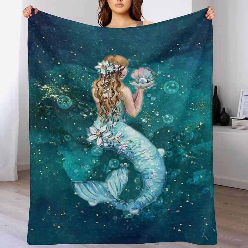 毛布 メンズ レディース フランネル 柔らかい 暖かい 家居用 人魚 プリンセス プリント柄 北欧 スタイル ポリエステル 軽量 オールシーズン使用 快適 リラックス
