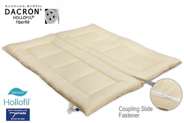 ・ギフト対応についてダクロンホロフィル中わた合体固敷ふとん (ナチュレ2WAY)/キング サ イ ズKL:180×210cm、わた量7.6kg、日本製(90×210cm:2枚)生地・素材綿100%(205本以上打込み)、ハシゴキルト(両面)、四方2本ステッチ仕上げ、200cmファスナー(2枚連結用)巻わた:ダクロンホロフィル中綿(ポリエステル100%)3.0kg芯わた:50mmポリエステル固綿(ポリエステル100%)4.6kg カ ラ ーベージュ 楽天国際配送対象商品(海外配送) 詳細はこちらです。 Rakuten International Shipping ItemDetails click here※海外配送は EMS で出荷いたします。詳細はお問合せください。ダクロン®ホロフィル中綿入り 合体固敷ふとん海外発送対応* 2つに分離・連結が可能なファスナー付き敷ふとんです。ダブルサイズ以上の大きなサイズの海外発送を実現しました!*やまだオリジナル商品だから超ロングサイズなど別注サイズも可能!(ご希望サイズにお作りします。別注価格は別途お見積りとなります。)■ホロフィル綿 固敷ふとん■フローリング床、畳等でご使用いただけます。中芯使用で、しっかりした固敷ふとんです。■ダクロン®ホロフィル®の特徴■インビスタ社のダクロン®ホロフィル®中綿は、繊維1本1本に4つの空気孔をもつ中空4穴構造。ふんわり軽く、心地よいあたたかさをお届けします。繊維の表面に特殊コーティングが施されており、洗濯しても繊維が固まらず、丸洗いが可能。さらに、洗ったあとの速乾性も非常に優れ、天気が良い日は4〜5時間ほどで乾きます。また、動物性繊維とは違い、アレルギーの原因となるチリダニの温床となりにくいので、お子さまやアレルギーを心配される方にも安心してお使いいただけます。■アレルギーを起こしにくい■オーストラリアでは、インビスタ中綿素材はビクトリア州ぜんそく基金、オーストラリアアレルギー基金に推奨されています。 ----------------------------------------------------------------------------------【やまだオリジナルふとん お客様とのお約束】特殊サイズのふとんもすべてお作りします。基本的にはアイボリー無地もしくは無地カラー展開での生地でお作りします。商品には全て品質表示ラベルと当社のやまだネームが付きます←これが品質保証の証です!データベース管理により、やまだネーム付ふとんはお買上後1年間の品質保証をさせていただきます。お洗濯後のクレームは、お客様の洗濯方法等によりますので、期間内であっても保証対象外となります。----------------------------------------------------------------------------------ふとんカバーを一緒にご注文いただきますと、ご希望の方にはふとんにカバーをかけてお届けいたします。お気軽にお申し付けください 【楽ギフ_のし宛書】【楽ギフ_メッセ入力】 ダクロンホロフィル中わた合体固敷ふとん (ナチュレ2WAY)/キング