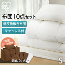 布団セット シングル 10点セット KFS-M10ST アイリスオーヤマ 来客用 一人暮らし 低反発 オールシーズン 掛け布団 敷き布団 マットレス 枕 除湿シート 収納バッグ 送料無料