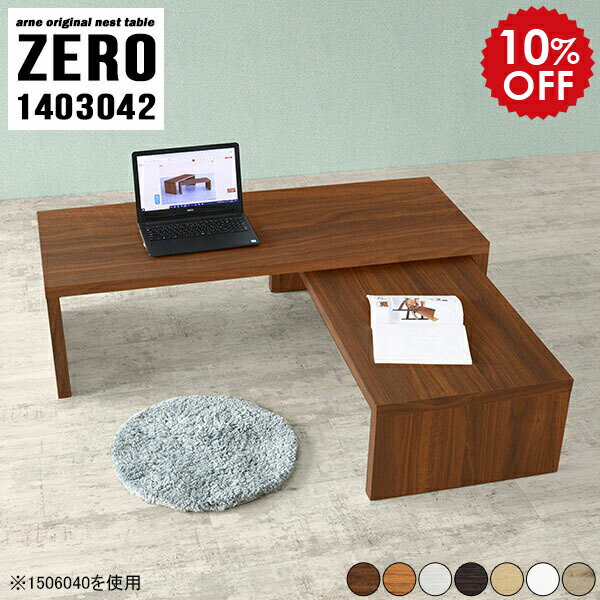 ZERO 1403042 木目サイズ[大]幅1400 奥行300 高さ420mm[小]幅1240 奥行300 高さ340mm板厚:40 mm材質[天板表面]デルナチュレ化粧合板(ブラウン・ダークブラウン・北欧チーク)強化紙化粧合板(ナチュラル・ホワイトウッド・オーク)ポリエステル化粧合板(ホワイト)[天板裏・側板]プリント化粧合板カラーブラウン/ダークブラウン/ホワイト/北欧チーク/ナチュラル/ホワイトウッド/オークからお選び下さい。※モニターなどの閲覧環境によって、実際の色と異なって見える場合がございます。仕様天板耐荷重:大小ともに約40kg(均等荷重)日本製完成品床キズ防止保護材つきブランド送料送料無料※北海道・沖縄・離島は送料別途お見積もり。納期ご注文状況により納期に変動がございます。最新の納期情報はカラー選択時にご確認ください。※オーダー商品につき、ご注文のキャンセル・変更につきましてはお届け前でありましても生産手配が済んでいるためキャンセル料(商品代金の50%)を頂戴いたします。※商品到着までの日数は、地域により異なりますご購入時にお届け日の指定がない場合、最短日での出荷手配を行いメールにてご連絡させていただきます。配送・開梱設置について※北海道・沖縄・離島は送料別途お見積もりいたしましてご連絡いたします。【ご注意ください】離島・郡部など一部配送不可地域がございます。配送不可地域の場合は、通常の配送便での玄関渡しとなります。運送業者の便の都合上、地域によってはご希望の日時指定がお受けできない場合がございます。建物の形態(エレベーターの無い3階以上など)によっては別途追加料金を頂戴する場合がございます。吊り上げ作業などが必要な場合につきましても追加料金はお客様ご負担です。サイズの確認不十分などの理由による返品・返金はお受けできません。※ご注文前に商品のサイズと、搬入経路の幅・高さ・戸口サイズなど充分にご確認願います。→ 詳しくはこちら備考※製造上の都合や商品の改良のため、予告なく仕様変更する場合がございますので予めご了承ください。当店オリジナル家具を全部見る管理番号0000a69432/0000a69433/0000a69434/0000a69435/0000a69436/0000a69437/0000a69438/メーカー希望小売価格はメーカーカタログに基づいて掲載していますこのページは ZERO 1403042 木目のページです。同じデザインの、サイズが違うテーブルを入れ子のように組み合わせて収納するネストテーブル。テーブルとしてだけではなく、使い手に合わせて様々な使い方ができるのが特徴的なテーブルです。普段はネストしてコンパクトに置いておくことが可能。高さの違いを活かしてお部屋のコーナーにL字型に配置したり、アイデア次第で様々なレイアウトをお楽しみいただけます。来客時や作業をするときなど、広いテーブルが必要な時は2台並べてワイドに使用。幅の広いソファにも対応できます。お部屋の角に、L字型にネストさせて設置。ディスプレイを楽しんだり、テレビボードとしてもおすすめです。1つはテーブル、もう1つはラックとして使うなど個々でも活躍。シンプルな形ですので置く場所を選ばず幅広い用途でお使いいただけます。板の厚みは約4cm。しっかりとした厚みがあるので、テレビ台としてのご利用も可能です。カゴやケースなどを天板下に設置して収納スペースに。幅13・奥行き7・高さ3サイズの組み合わせは全部で250サイズ以上!どんなインテリアにも合うよう、カラーは7種類とたくさんご用意しております。ほしいサイズがない場合でも、1cm刻みでサイズオーダー承っております。2台のテーブルとしてはもちろん、パソコンデスク、テレビ台、ディスプレイラック、キッズデスクなど幅広いシーンで活躍。無駄を省いたシンプルなデザインですので、長くご愛用いただける商品です。
