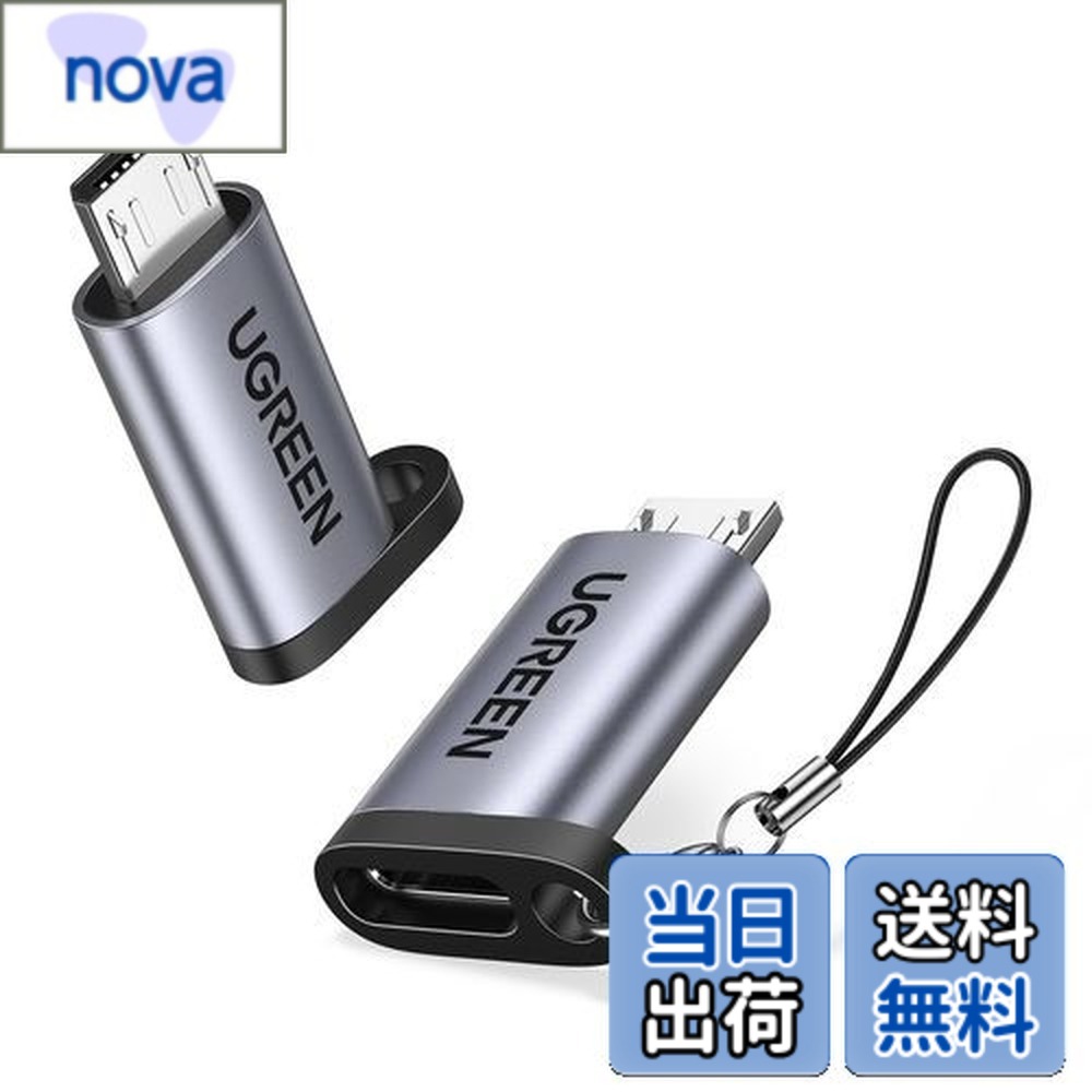 【送料無料】UGREEN マイクロUSB変換アダプター 2個入り USB C to Micro USB 変換コネクタ 急速充電とデータ同期 Xperia、Galaxy S7 Edge、Nexus、 P10 Lite等Micro USB設備対応 ストラップ付