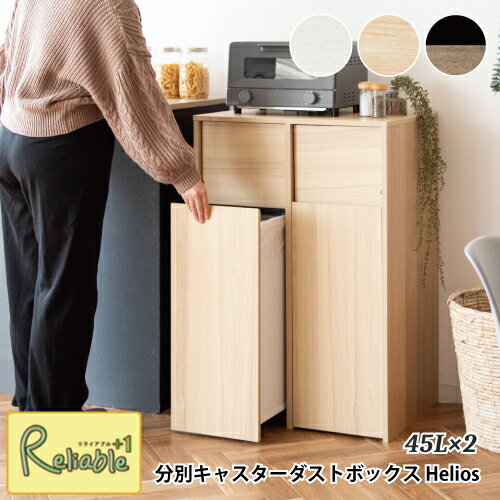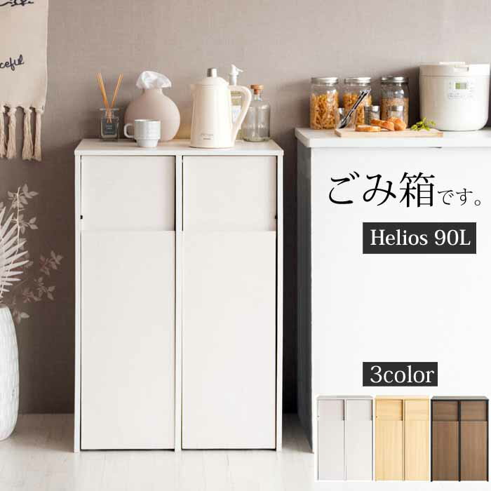 配送について本商品はメーカー直送品です。特徴ゴミ箱に見えないスタイリッシュなデザインでお部屋に溶け込む、キャスター付き木製ダストボックス『Helios(ヘリオス)』。 ニオイが漏れにくく押すだけで簡単に捨てられるプッシュ扉式。ゴミ箱は手元までサッと移動できるキャスター付きで、ゴミ捨ての際も取り出してすぐ回収できます。ゴミ袋の着脱も簡単で利便性バツグンです。分別に便利な二連式で、たっぷり入る容量45L×2で大家族のご家庭でも快適。 ホワイト、ナチュラル、ブラウン×ブラックの3カラーをご用意。お好みやお部屋の雰囲気でお選びいただけます。サイズ幅60.5×奥行き43×高さ90cm耐荷重20kg素材合成樹脂化粧繊維板、プリント紙化粧繊維板その他組立式(約60分)、対応ポリ袋:各45Lご注意事項※ 北海道、沖縄、離島への配送はできません。 ※ お客様ご都合による、ご注文後のキャンセル・商品変更・返品・交換はお受けできませんのでご注意ください。 ※ 稀にご注文受付後に在庫切れになってしまう場合がございます。その際にはご連絡の上、キャンセル処理させて頂きます。 ※ 画面上のカラーはご使用ブラウザやモニターの設定により、実物とは若干異なる場合がございます。