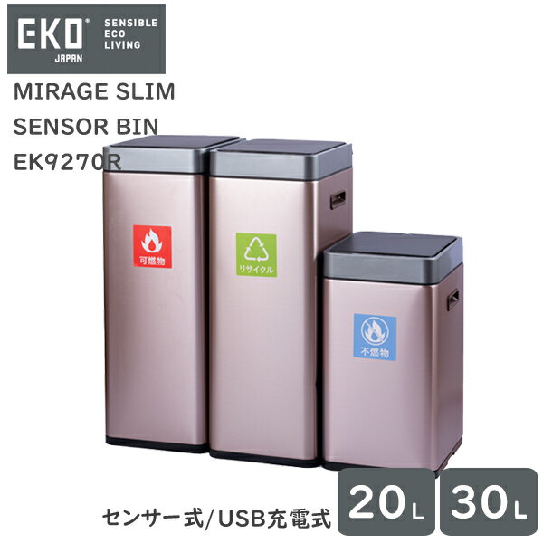 【日本国内正規品】 EKO イーケーオー MIRAGE SLIM SENSOR BIN 20L ミラージュスリムセンサービン20L EK9270RGMT-20L (20リットル) ごみ箱 ゴミ箱 ダストボックス センサー式自動開閉 USB充電