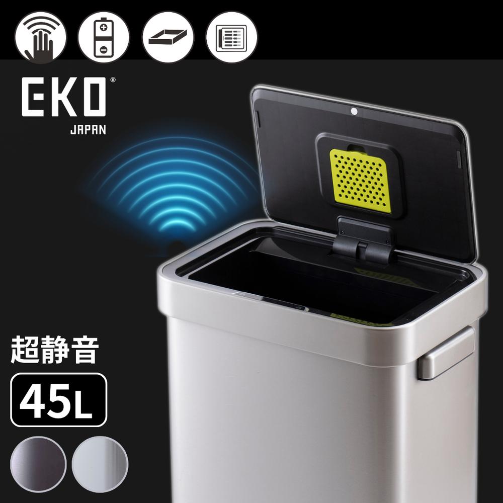 【正規販売店】【送料無料】EKO イーケーオー DELUX MIRAGE SENSOR BIN デラックスミラージュセンサービン 45L シルバー 46.2x27x65.5cm 国内1年保証 リチウムイオン電池充電式 自動開閉 手を触れない ゴミ箱 ダストボックス おしゃれ インテリア 衛生的