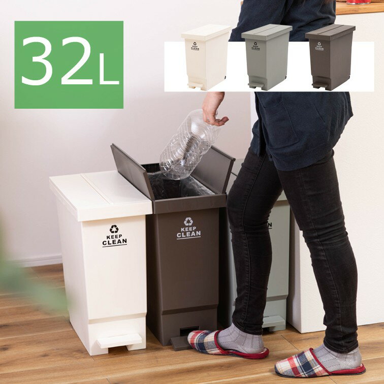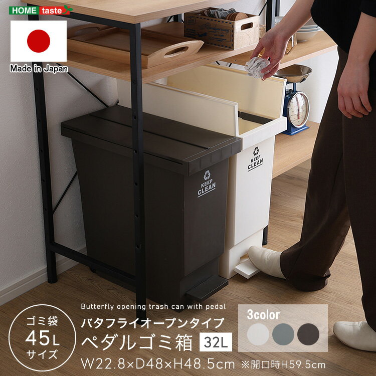 ごみ箱 ダストボックス ゴミ箱 32L バタフライ式 コンパクト 分別 馴染みやすい ゴミ おしゃれ ペール ペダル 省スペース 軽量 リビング キャスター 取っ手 袋が見えない 袋が見えない ペダル折りたたみ バタフライオープンタイプ アースカラー シンプル ペダル ゴミ箱32L